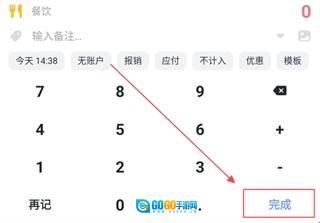 3、输入消费或收入的金额,最后点击右下角的【完成】按钮就可以了