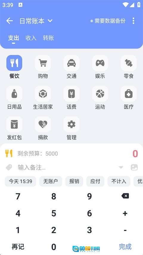 4、可以为您的账单内容添加备注信息,记录相关事项内容。
