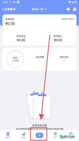 1、打开一羽记账,进入首页后可设置您当月的总预算,以及本月的支出与收入;