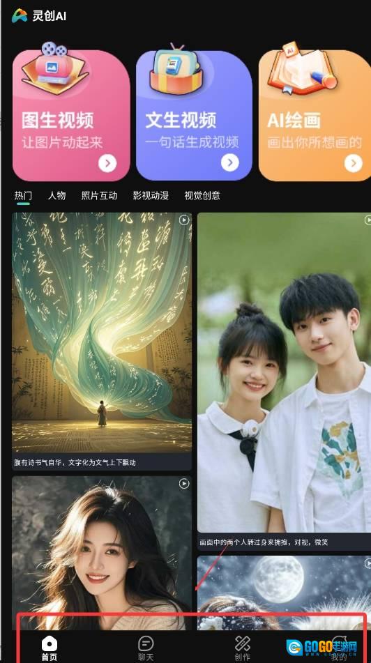 1、启动灵创AI软件并进入首页后,就能挑选自己偏好的风格。