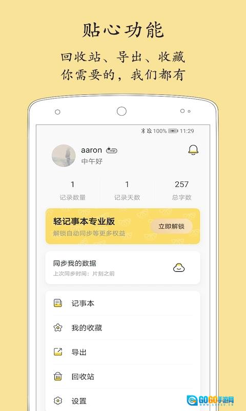 好记性不如烂笔头,重要的事情用轻记事本记录下来,就再也不用担心忘记了。这款软件支持图文并茂、视频配文字等多种记录方式,能帮助用户更好地管理和使用信息,告别单一的文字叙述模式。此外,它应用范围广泛且功能强大,无论是生活、学习还是工作场景,都能派上用场。