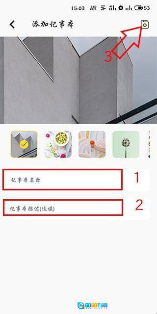 4、输入记事本的名称与描述,接着点击右上角的保存按钮,这里我们以名称为“记事一”的记事本作为示例。