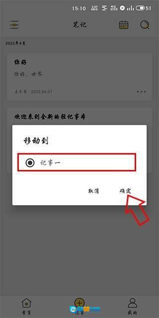 8、最后我们就能在记事一中看到我们创建的标题为“你好”的笔记了