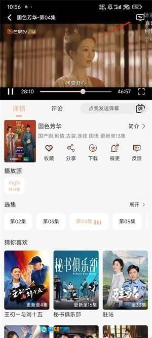 1、点开想要的影视进入播放页面,点击右上角的投屏