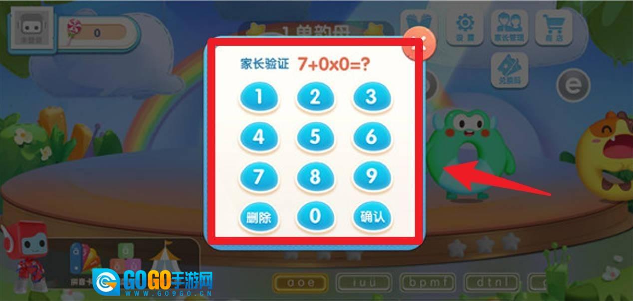 3、部分功能需要家长验证,家长需正确输入系统给出的简单算式答案,验证通过后才能进入相关环节,以保障孩子安全。