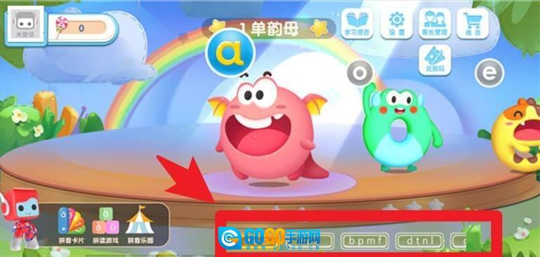 2、在软件界面中,系统会通过卡通形象引导孩子,按照从单韵母、声母到整体认读音节的顺序,一步步达成学习目标。