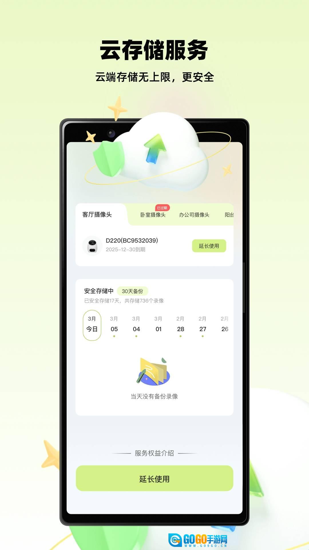 4、云存储与备份功能:具备云端存储方案支持及备份天数展示能力,方便用户查看当日是否存在备份录像,且能根据实际需求延长使用期限。