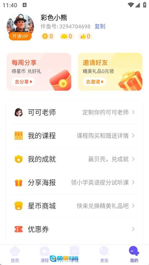 6、登录账号后,即可解锁AI可可老师、课程、成就及商城等更多特色服务内容。