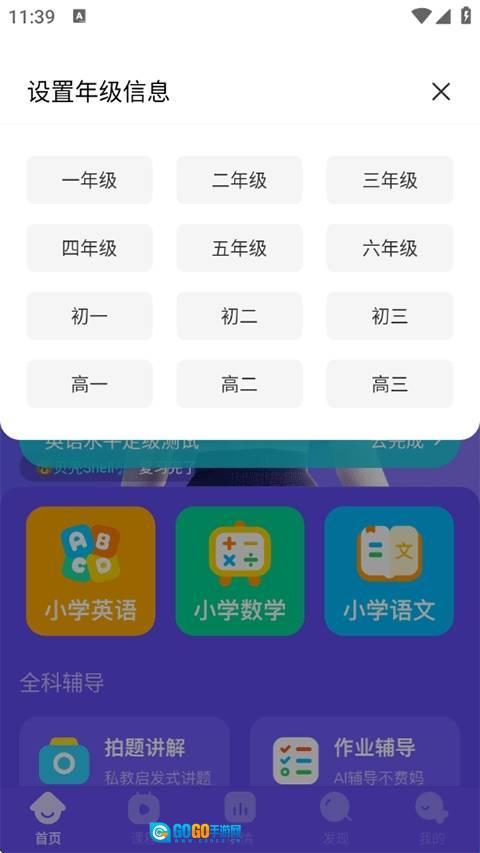 2、从小学一年级至高中三年级,设置你的年级信息;