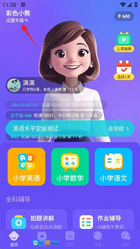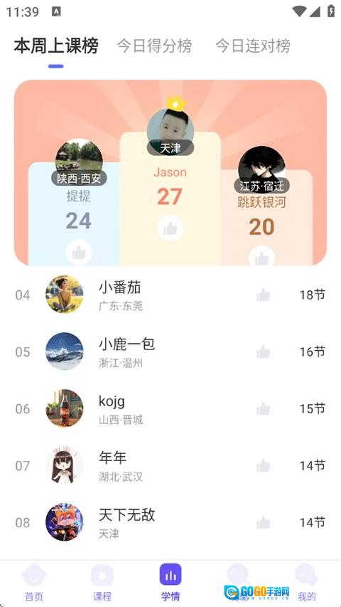 4、在学情页面,你能够查看上课榜、得分榜、连对榜等具有特色的趣味排行榜。