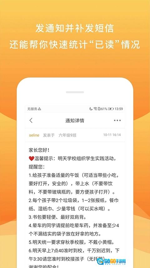 校内外是家长和老师之间的沟通桥梁,主要用于记录与分享孩子的在校情况。在这个平台上,老师既能发布通知、布置作业、分享孩子的校园日常生活,又能和家长及时沟通,共同助力孩子健康成长,是一款非常实用的教育类软件。