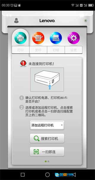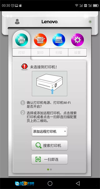 2、在手机上打开小新打印软件后,系统会自动添加打印机;此外,也能通过一扫即连功能扫描“打印配置页”上的二维码来完成连接。