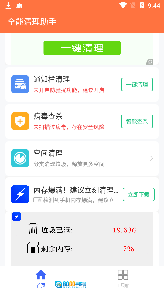 1. 并安装全能清理助手。