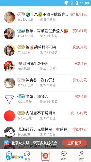 随着用户数量的不断增长,这款软件的受众群体也日益扩大。其中涵盖了学生群体、宝妈群体、网络兼职人群等各类用户,同时还包含了一系列小型任务。