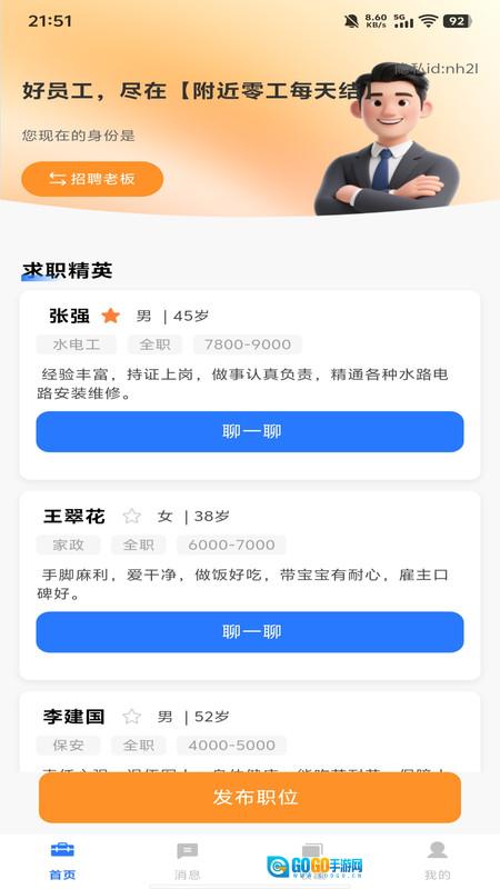 1、企业发布岗位同样便捷,只需上传需求,就能快速触达海量求职者,临时用工需求也能轻松解决。