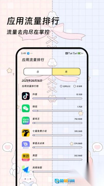 1、具备应用级流量统计功能,能够精准识别后台偷偷消耗流量的进程,助力用户清晰掌握各个应用的流量使用情况。