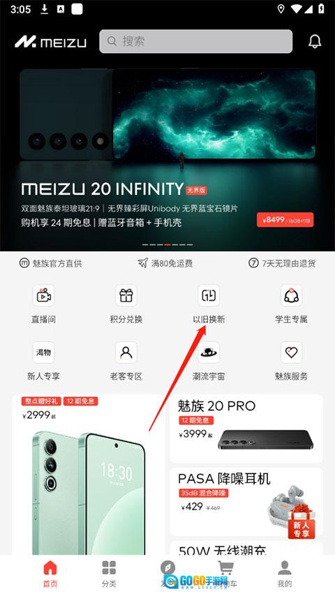 1、在本站打开软件进入首页后,点击以旧换新按钮