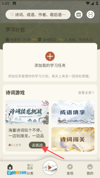 3、进入首页,点击【诗词接龙挑战】图标。