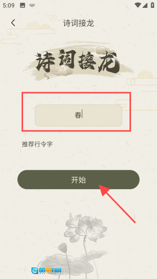 4、输入行令字,点击【开始】按钮进行挑战。