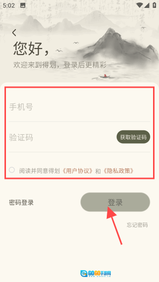 2、使用手机号、验证码或密码登录,完善相关信息。