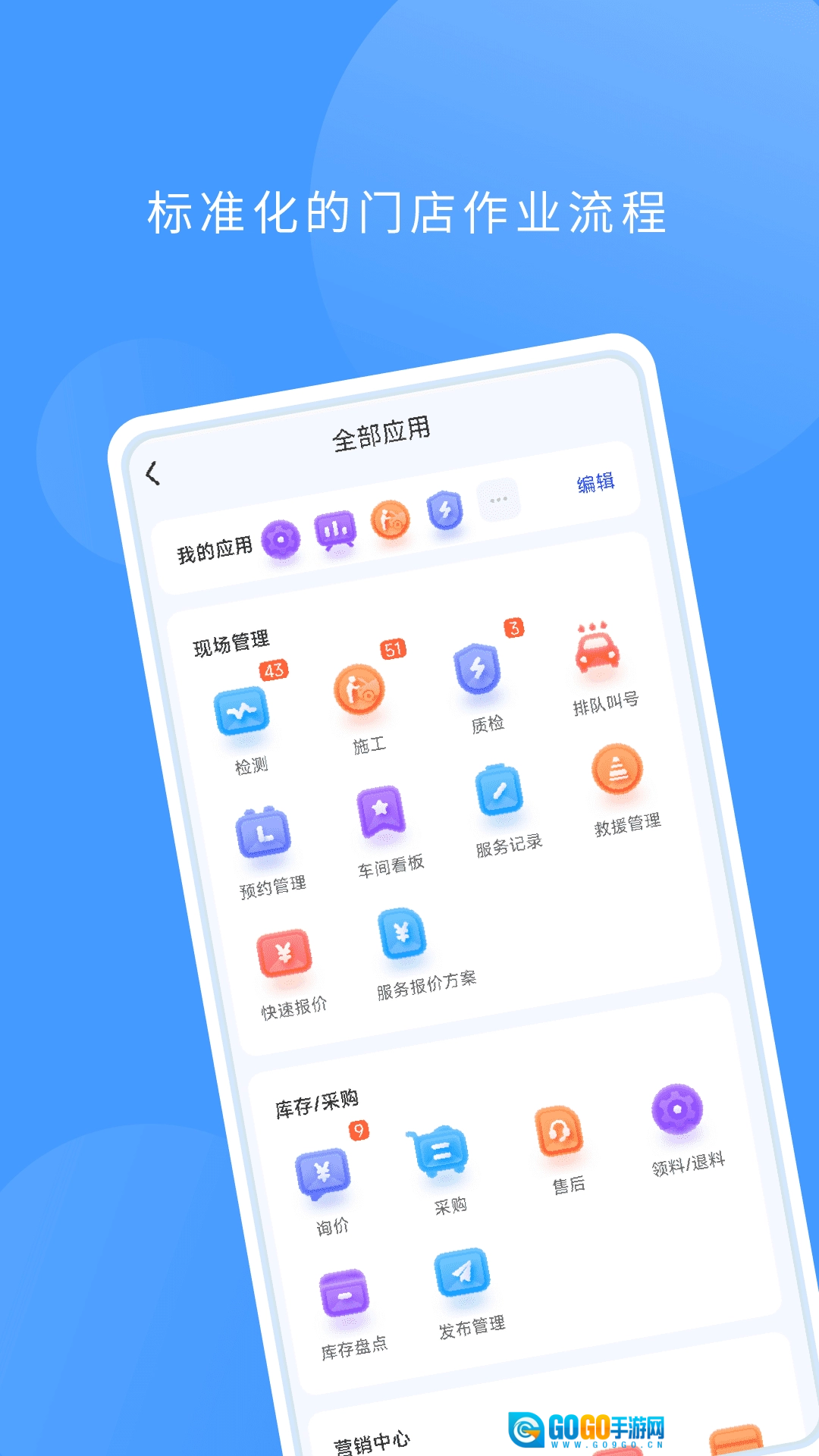 这是一款专门面向汽车养护门店的营销服务类应用,能为商户提供智能化的汽车门店管理功能,支持在线管理会员、处理客户订单以及维护门店员工信息等操作。