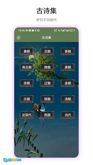 2、在古诗集页面,点击朝代选项,即可进入对应朝代的作者作品集页面。