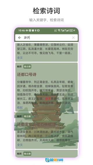 3、高效关键词检索功能:可通过诗句、作者、题目等关键词进行检索,输入关键词后能快速匹配到对应的完整诗词内容,响应速度快,能够满足用户即时查阅的需求。