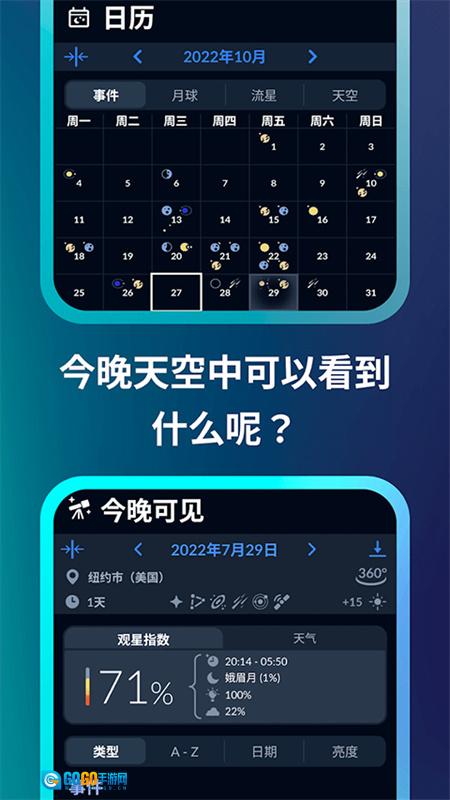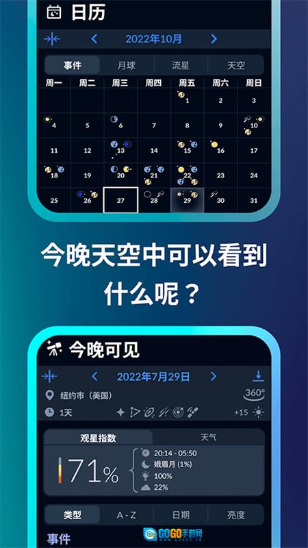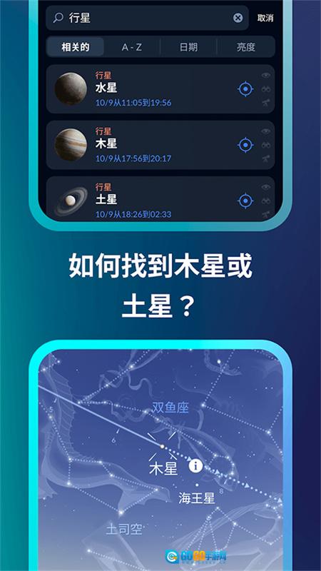 1、把手机朝向天空,就能在交互式天空地图上查看各类空间物体的实时方位。 2、开启时间机器功能,即可知晓天体在不同时间点的具体位置。