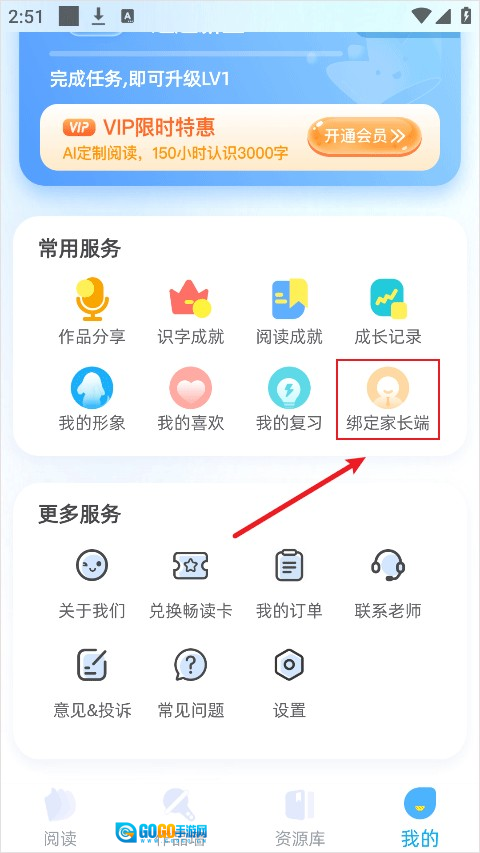2、然后选择绑定家长端