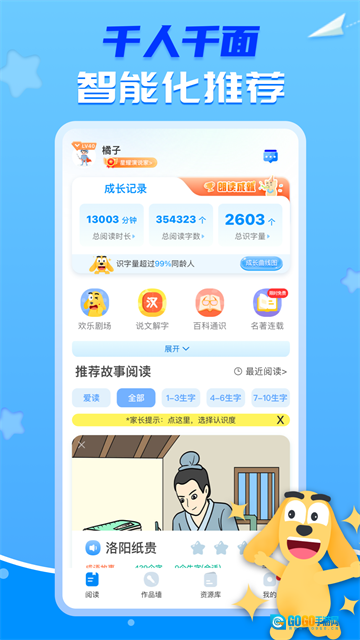 6、依据识字量精准推送故事,4岁孩子即可独立阅读。