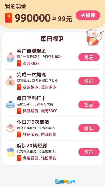 贝果短剧是一款优质易用的手机短剧观看应用。它汇聚了海量短剧资源,题材丰富多样,更新也十分及时。平台提供精准的内容分类和个性化推荐服务,能帮助用户快速找到心仪的短剧类型。更值得一提的是,这是一款可以通过观看视频赚红包的宝藏应用,用户获得的红包还能兑换成零钱。每天都有大量热门视频更新,让您在观看的过程中既能享受乐趣,又能收获满满的快乐!
