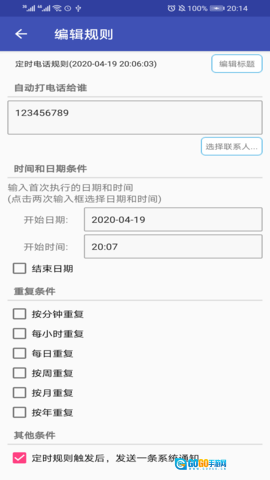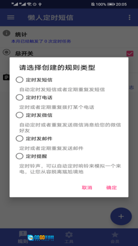 懒人定时短信支持定时给单个或多个联系人发送微信,您可设定具体发送时间,保证信息准时送达;同时,也能借助软件定时给单个或多个联系人发送电子邮件,便于在特定时间传递重要信息。此外,该软件还具备定时铃声提醒功能,避免您遗漏任何定时任务。无论是定时预约发送短信、微信、电子邮件,还是定时拨打电话、设置铃声提醒,甚至定时自动锁屏,软件都能满足您的需求。懒人定时短信是一款功能多样、操作简单的通讯管理应用,可助力您实现各类定时发送与提醒需求,无论是个人使用还是商务场景,都能提升工作效率,让您更便捷地管理通讯事务。