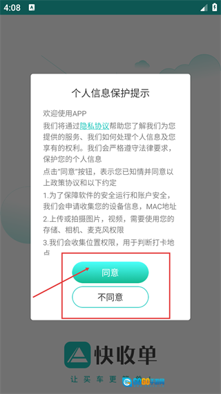 进入软件后会弹出【个人信息保护提示】,需点击【同意】按钮,方可继续使用软件功能。