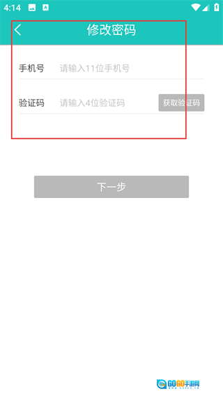 3、进入【修改密码】页面后,首先填写【手机号-请输入11位手机号】这一栏,接着点击【获取验证码】按钮,完成这两步操作后就能激活后续步骤。