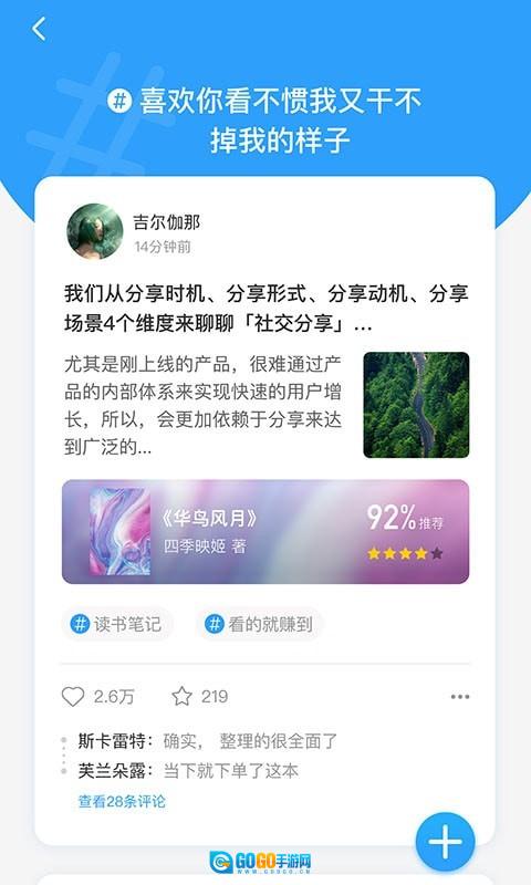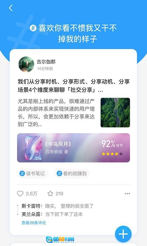 5、【社区互动】书友们能够在此关注自己喜爱的用户,与其他拥有共同阅读品味的书友一同分享和交流读书的感悟与体会。