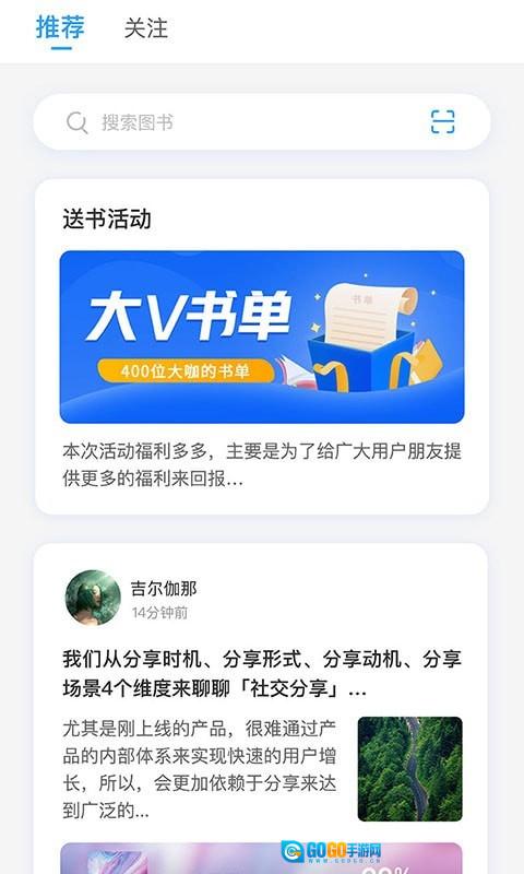 1、·优质书单随心选,软件内汇聚了众多书圈大V,他们能为用户提供各类不同题材的书单,帮助用户更轻松快捷地找到心仪的书籍。