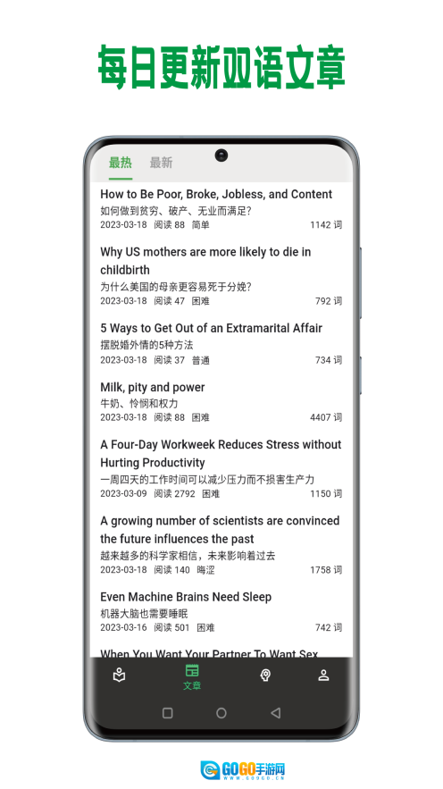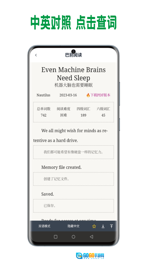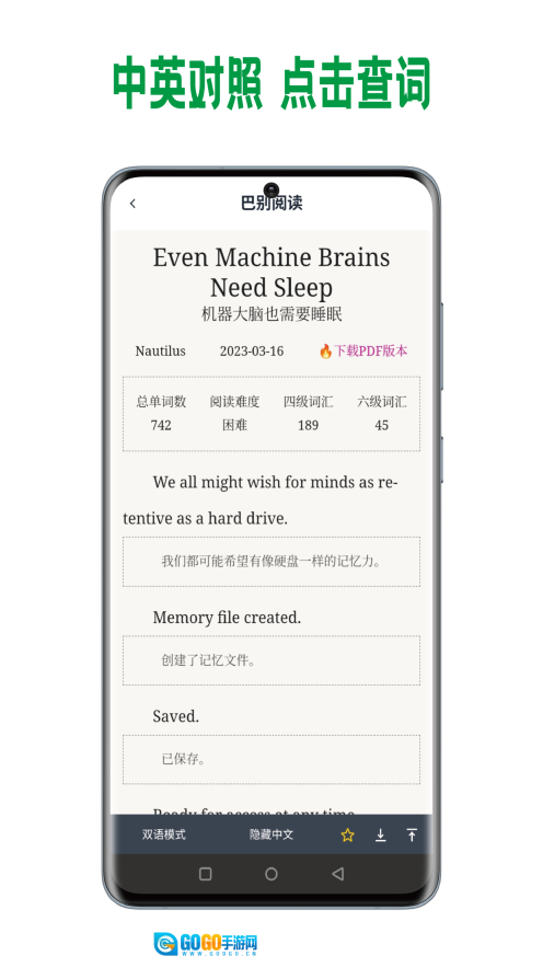 巴别阅读是一款为英语学习爱好者量身定制的阅读辅助工具,它不只是专注于英语学习的阅读平台,更是汇聚海量英文资料的在线阅读宝库。这里内容丰富多元,资源全面广泛,从经典英文原著到最新英文资讯,一应俱全。平台特意设置了中英对照功能,让读者在阅读英文原文时,能轻松对照中文翻译,边读边学,切实提高英语阅读理解能力,使英语学习更高效、更有趣。