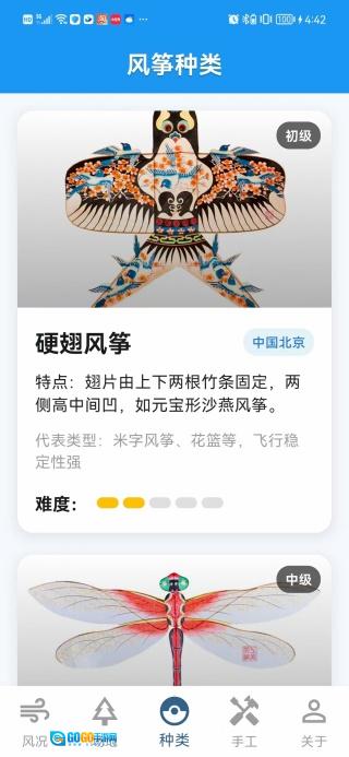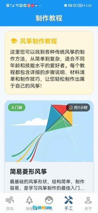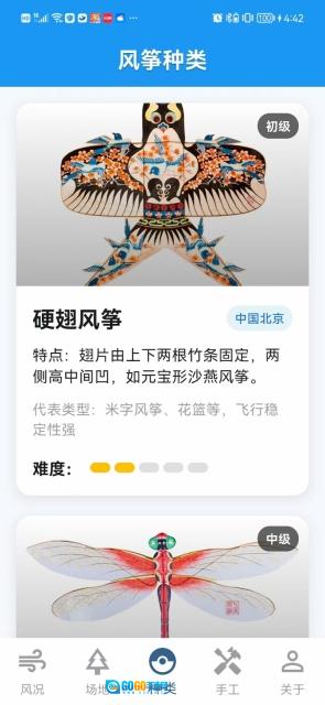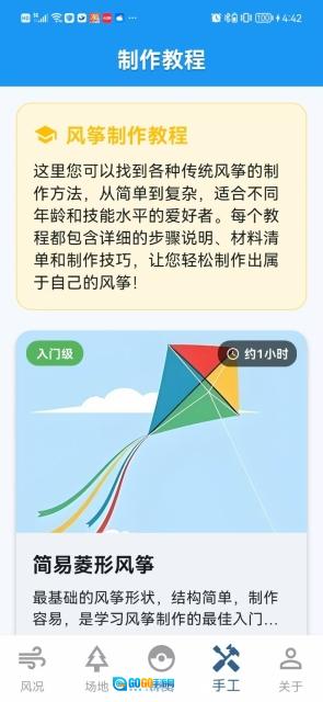 4、在手工页面里可以了解风筝制作的教程,并且教程还分了不同的等级。