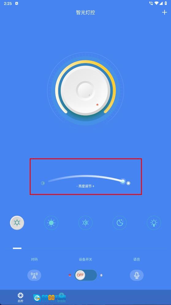 1、在亮度调节区域,可拖动滑块调整灯光亮度。