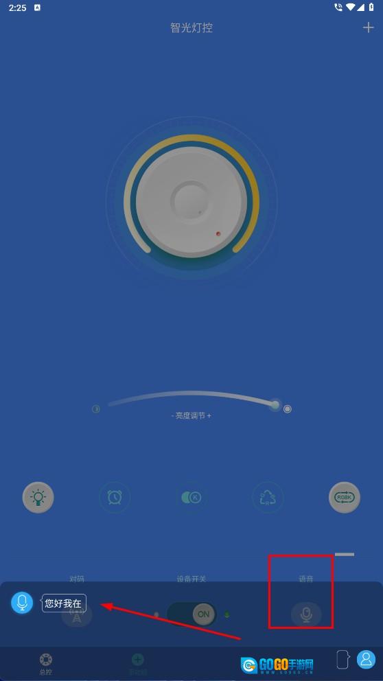 3、点击【语音】功能,就能借助语音指令来控制灯光,比如先发出“您好我在”唤醒系统,之后再进行相关操作。