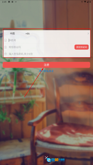4、进入注册页面后,先选择所在地区,再填写手机号码,点击【获取验证码】按钮并输入收到的验证码,接着设置登录密码,最后点击【注册】按钮即可完成账号的创建。