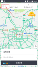 1、在这个界面里能够查看【今日订单/个】和【今日收入/元】,填好【当前位置】与【可选择目的地】之后,点击【创建订单】就能发起服务需求。