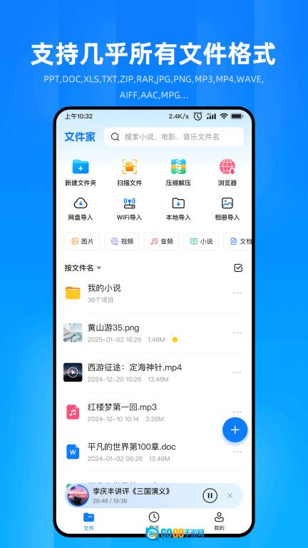 文件家是一款融合文件管理、音视频播放、文档阅读与扫描功能的综合型软件。它能有效提升用户的文件处理效率,带来流畅便捷的操作体验。借助其强大的功能整合,用户可在单一平台完成多项任务,从而享受到更高效的工作与学习模式。该软件兼容多种文件格式,保障用户在应对各类文件时都能轻松自如。