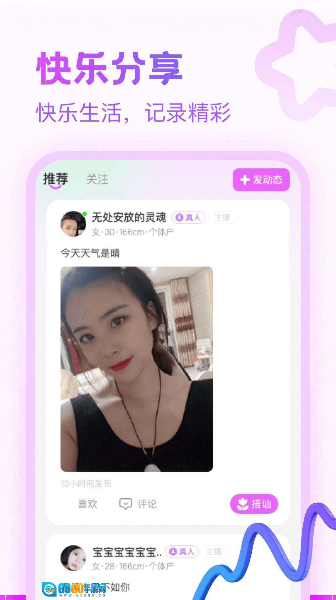 2、动态发布功能支持用户随时分享个人动态,借此展示自身的生活日常与个性特点,并能和其他用户展开互动交流。