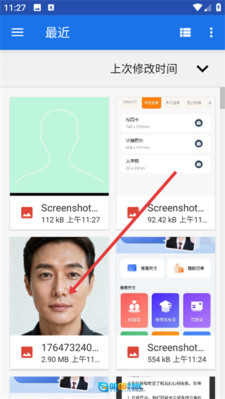 3、进入照片选择界面,在最近的照片列表里挑选出需要制作证件照的图片,接着进入预览编辑步骤。