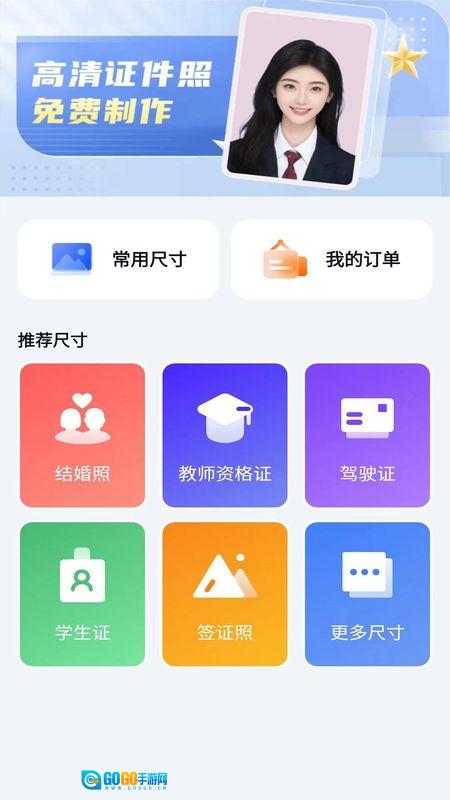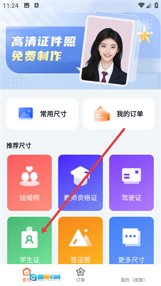 1、打开高清证件照制作的首页,在推荐尺寸里找到【学生证】这个选项并点击,就能进入对应的尺寸选择页面。