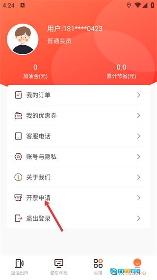 3、进入【个人中心】页面后,找到【开票申请】这一选项,点击它就能进入开票信息的填写操作界面了。