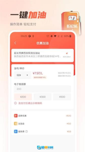 1、配备便捷的一键加油及支付功能,操作简便且可享专属优惠,助力用户在忙碌节奏中高效从容地完成能源补给。
