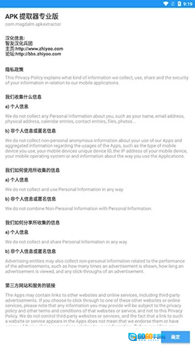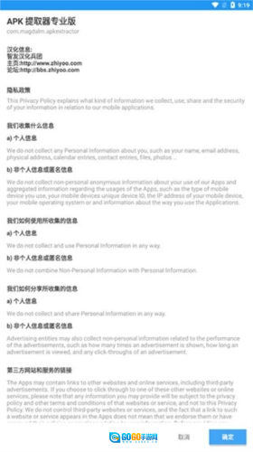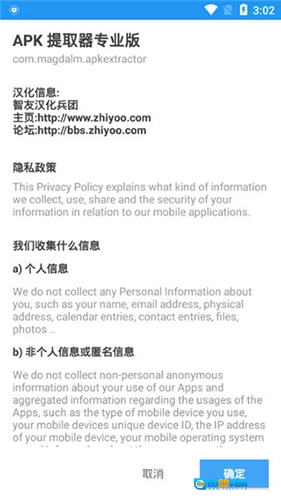 1、在本站下载APK提取器,安装完成后直接打开应用,首先会看到信息声明界面,具体内容可参考下图: