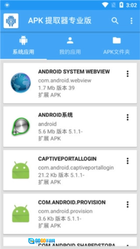 2、打开应用后,软件会自动收集手机里的各类应用信息,涵盖系统自带应用、个人安装的应用以及APK文件夹中的内容等;